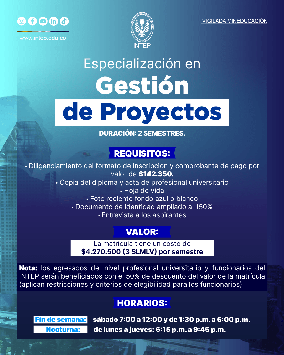 El aspirante debe acercarse a la Oficina de Ventanilla Única e Información del INTEP en la sede principal de Roldanillo, Valle. Traer los documentos en tamaño carta, legibles y completos. Si no están completos, no serán aceptados.