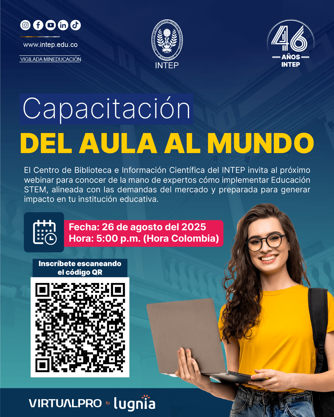 El Centro de Biblioteca e Información Científica del INTEP, te invita a un webinar donde, de la mano de expertos, aprenderás a implementar Educación STEM alineada con las demandas del mercado y preparada para generar impacto a nivel académco.