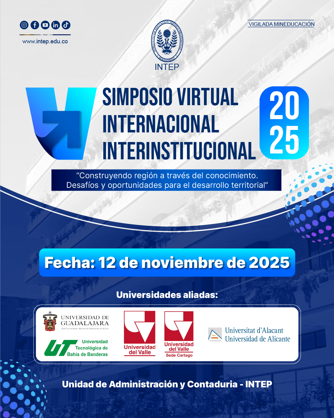 El señor Rector del Instituto de Educación Técnica Profesional de Roldanillo, Valle - INTEP, candidato a Doctor, Germán Colonia Alcalde, se complace en invitarle a la Audiencia Pública de Rendición de Cuentas Vigencia 2024, a realizarse el día de hoy, 10 de noviembre de 2025.