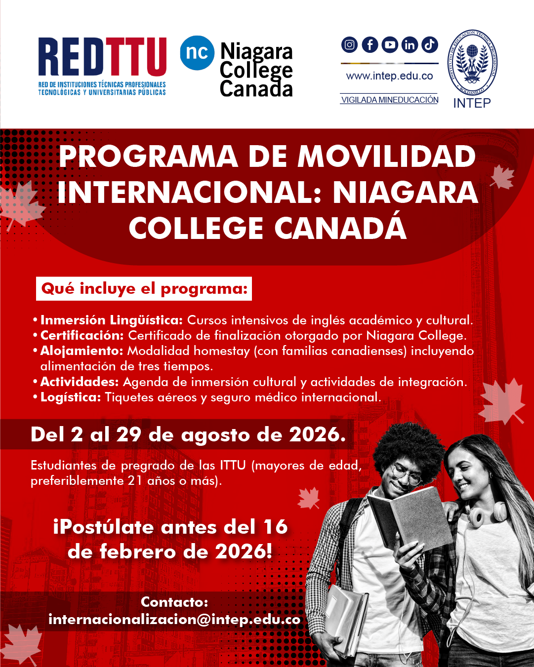 ¡Atención estudiantes INTEP! La Coordinación de Internacionalización te invita a vivir una experiencia única en el English Language and Culture Program (ELCP) en Niagara College, Canadá.👉 Para más información, acércate a la Coordinación de Internacionalización del INTEP.