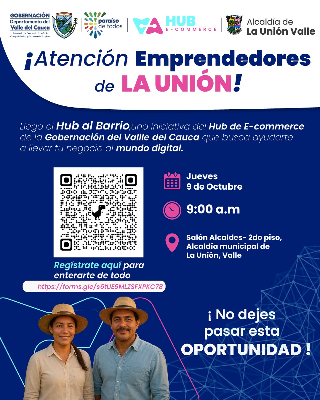 Desde la Unidad de Emprendimiento del INTEP, te invitamos a participar en “Hub al Barrio”, una iniciativa de la Gobernación del Valle del Cauca que busca ayudarte a impulsar tu negocio al mundo digital: