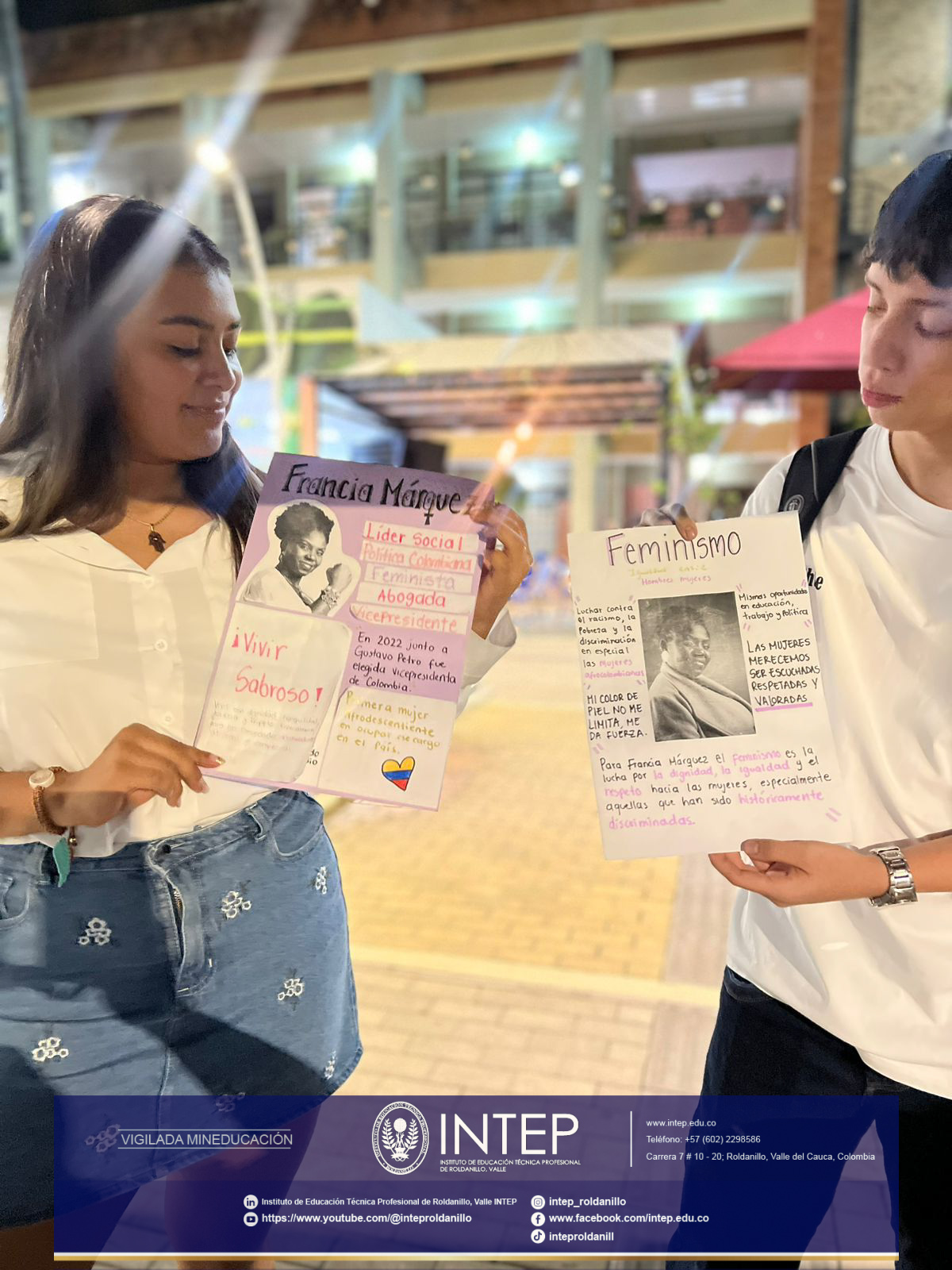 Los estudiantes del programa Técnica Profesional en Procesos Administrativos, realizaron una campaña de sensibilización en la plazoleta universitaria, con el propósito de reconocer las luchas, logros e historias de mujeres que han trabajado por la defensa de sus derechos y la construcción de una sociedad más equitativa.