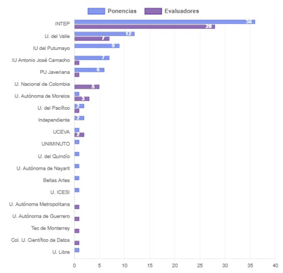 La diversidad institucional en este magno evento, con un núcleo fuerte de universidades que aportaron significativamente al desarrollo del congreso tanto en producción académica como en labores de evaluación, da muestra de la confianza del INTEP no solo a nivel nacional si no internacional.