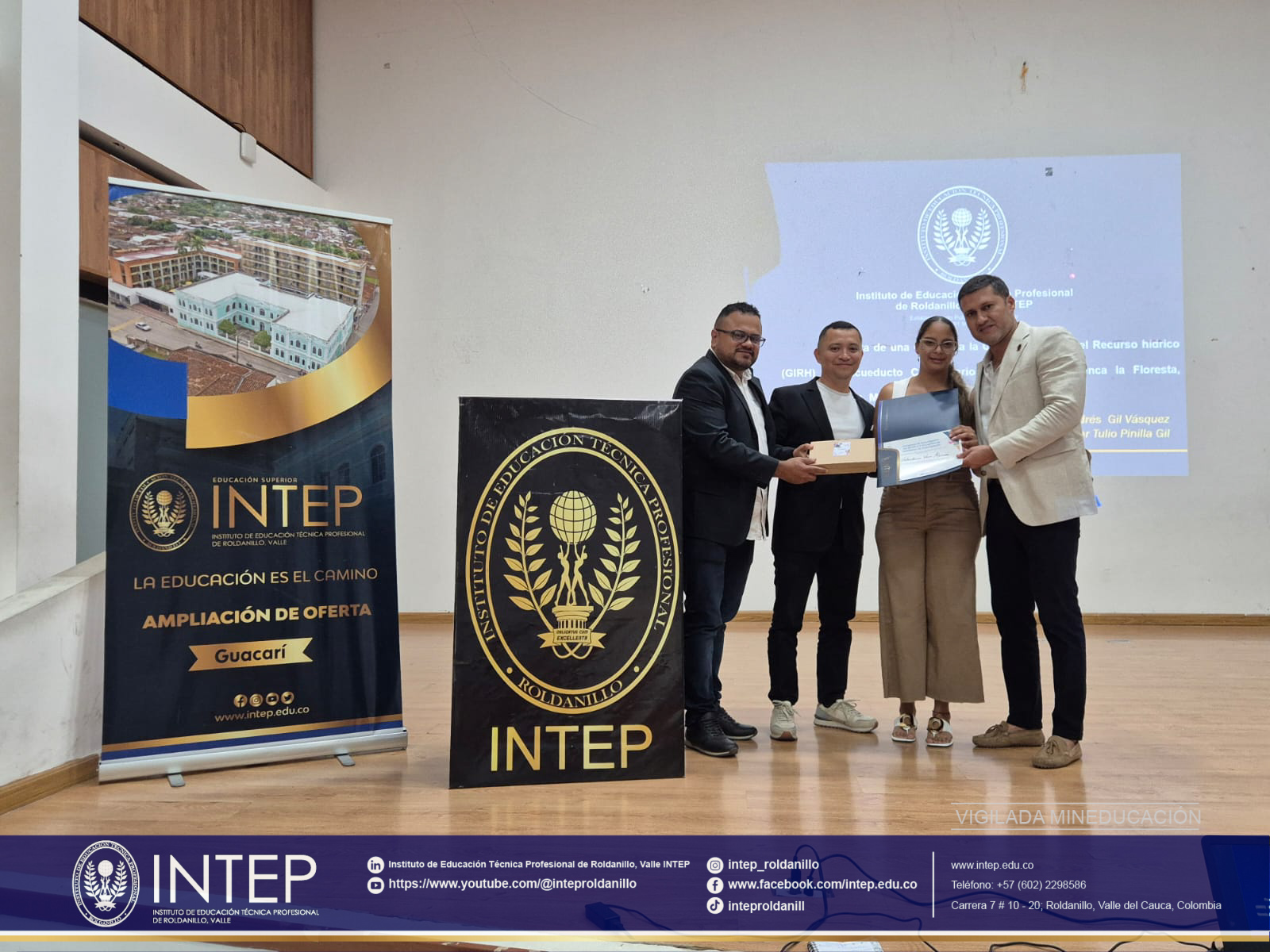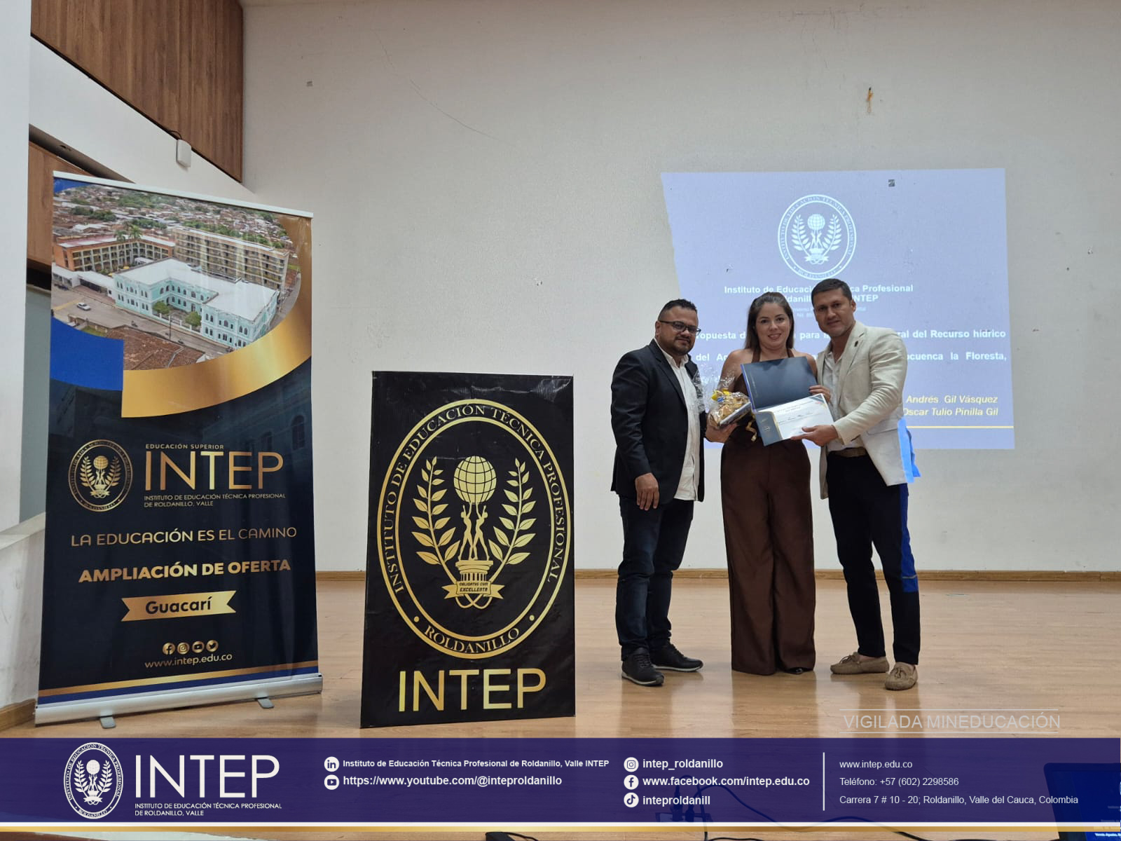 Desde el Centro de Investigación y Proyección Social – CIPS del Instituto de Educación Técnica Profesional de Roldanillo, Valle – INTEP, felicitamos a Profesora y Docente Investigadora Elizabeth Lorena Mora Ríos por obtener el primer puesto como ponente del Track en Tecnologías y Sostenibilidad en Turismo en el Congreso Investigación CINTEP; así como a las estudiantes Valentina Bejarano Molina y Valentina Vera Ramos por obtener el segundo puesto, y a Marly Yuliana Guarín Ortega por obtener el tercer puesto en el V Encuentro de Semilleros de Investigación; todos de INTEP Guacarí.