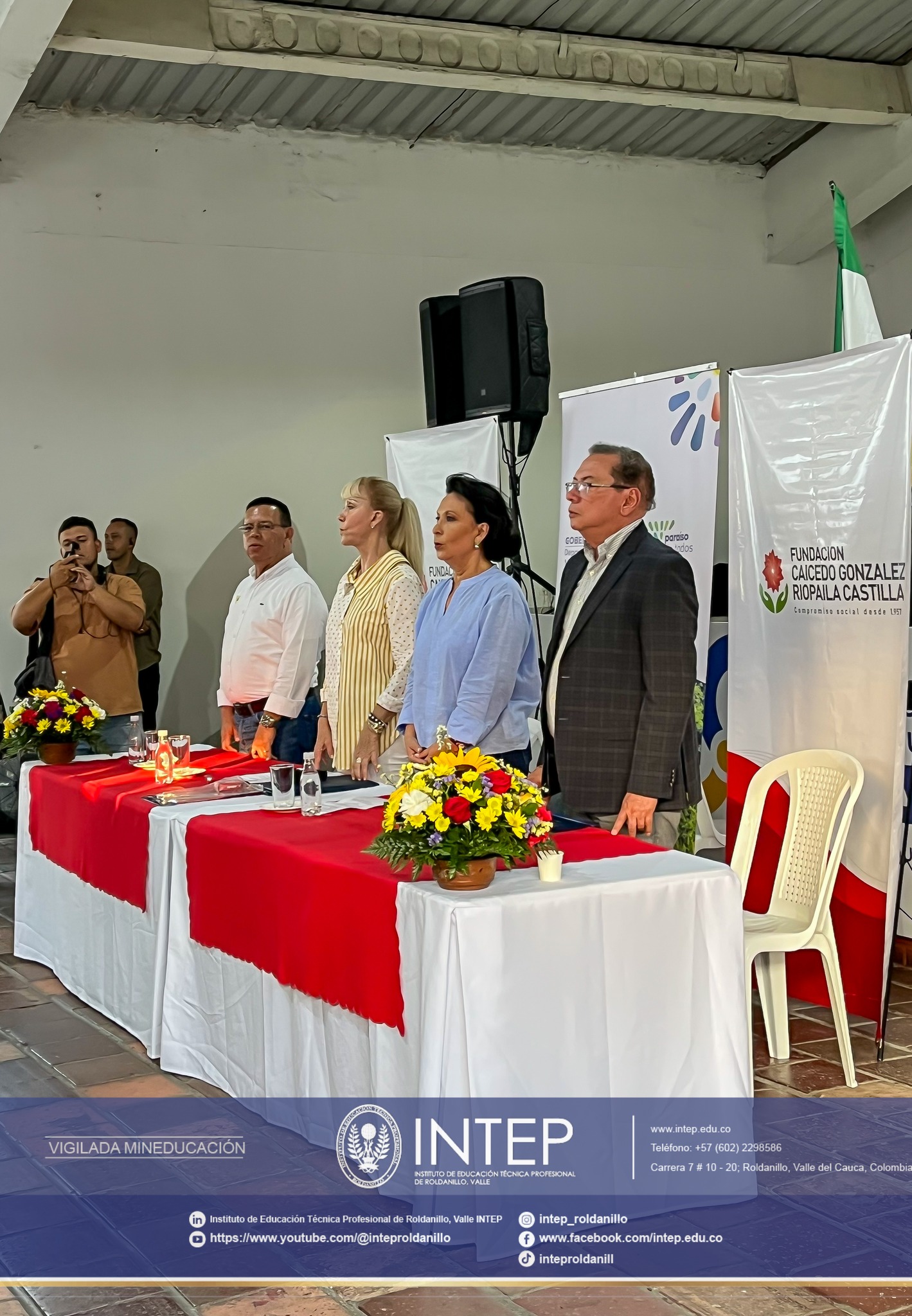 Este acto, estuvo acompañado por la Gobernadora del Valle Dilian Francisca Toro Torres, La Directora Ejecutiva de la Fundación Caicedo González Riopaila castlla, Dra. Ana Milena Lemos, el Alcalde de Florida Valle Dimas Antonio Martínez y el Rector del INTEP, Candidato a doctor, Germán Colonia Alcalde, Directivos del INTEP, Autoridades locales,estudiantes, docentes y comunidad en general.
