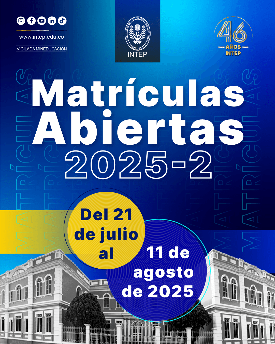 Las matrículas para el segundo semestre de 2025 en el INTEP (están abiertas para estudiantes nuevos y antiguos. Los estudiantes antiguos tienen plazo para matricularse entre el 21 de julio y el 11 de agosto, mientras que los estudiantes nuevos deben matricularse durante el período de inscripciones, que finaliza el 18 de julio, o una vez presentadas las entrevistas, hasta el 1 de agosto.