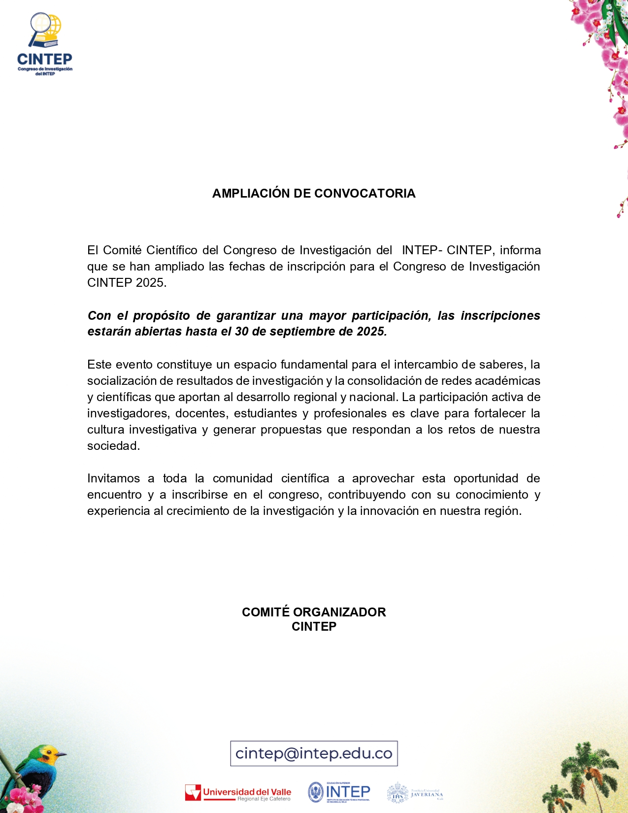 👉🏼El Comité Científico del Congreso de Investigación del INTEP- CINTEP, informa que se han ampliado las fechas de inscripción para el Congreso de Investigación CINTEP 2025