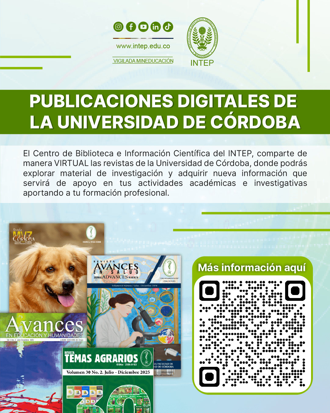 El Centro de Biblioteca e Información Cientifica del Instituto de Educación Técnica Profesional de Roldanillo, Valle - INTEP,comparte de manera virtual las revistas de la Universidad de Córdoba.