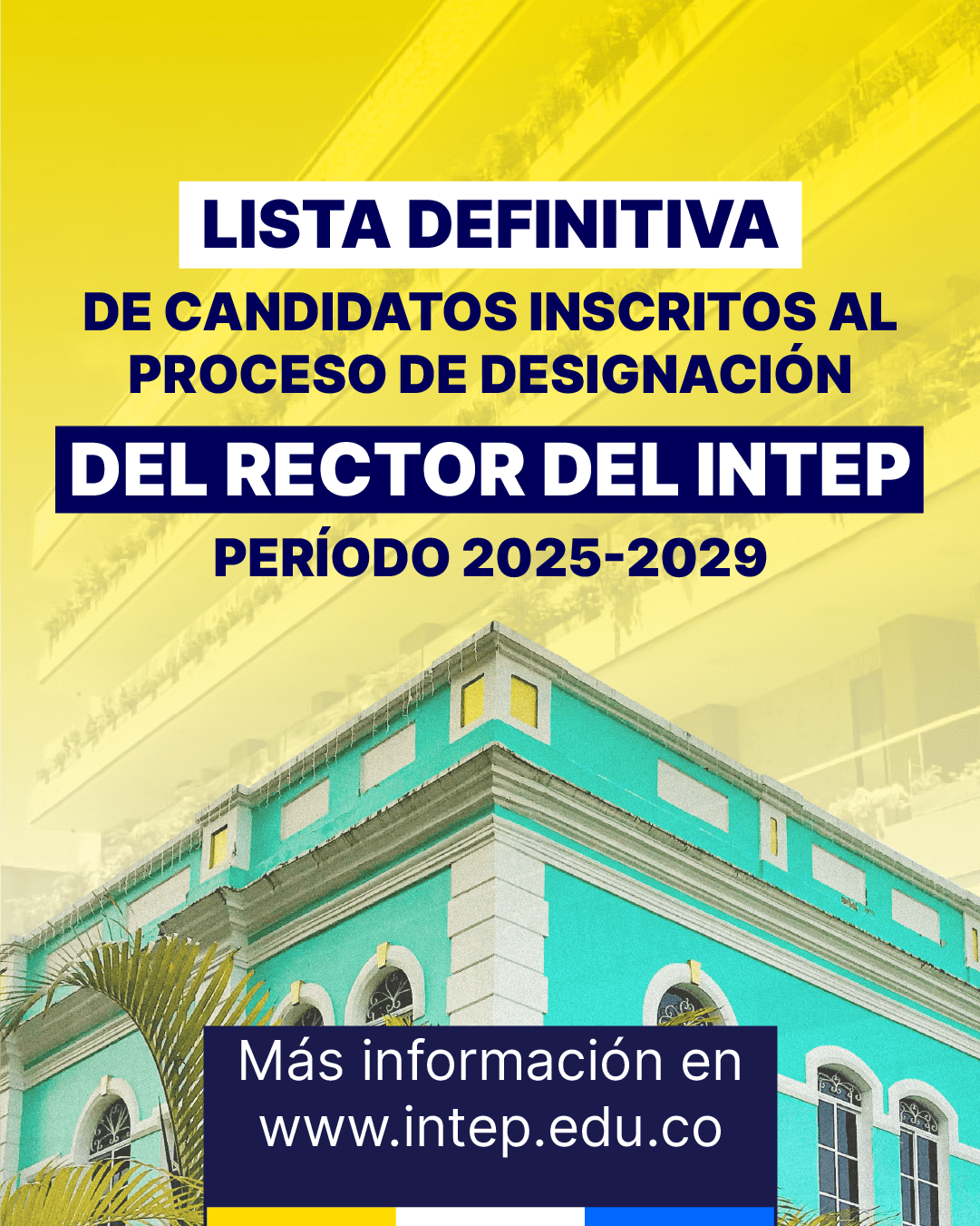 Lista definitiva de candidatos Inscritos al proceso de designación del Rector del INTEP Período 2025 – 2029