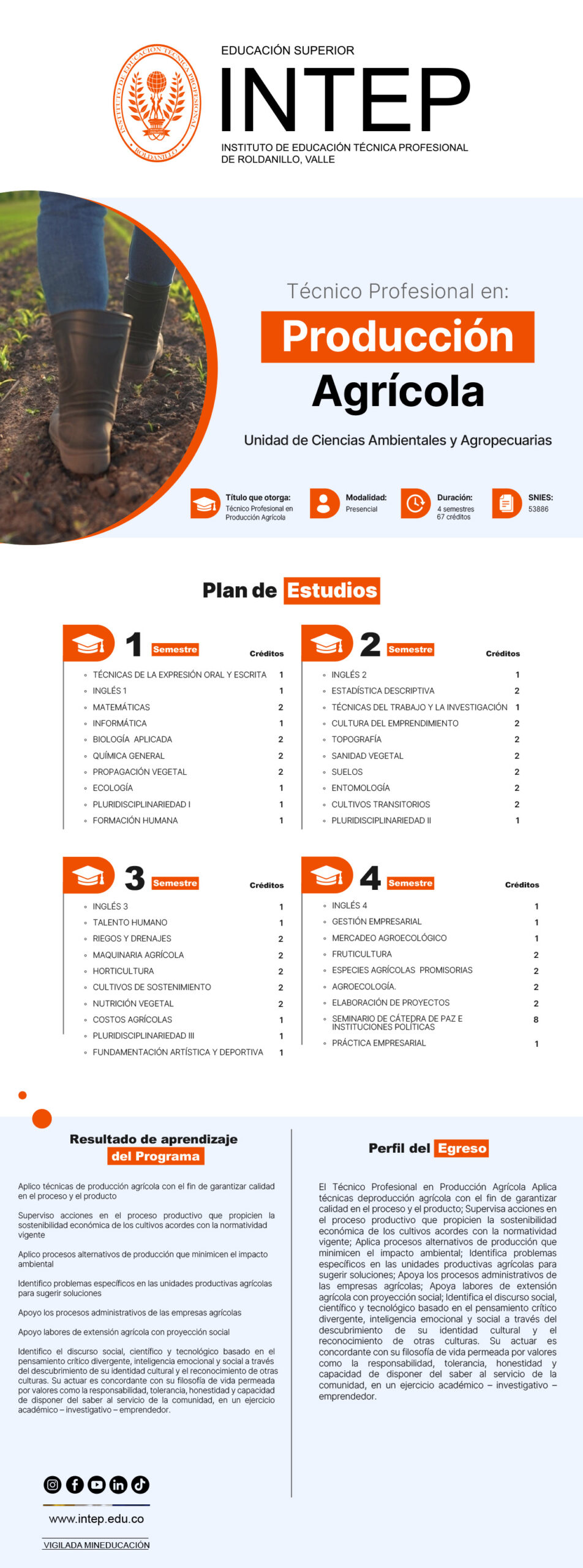 Técnico Profesional en Producción Agrícola Código SNIES: 53886